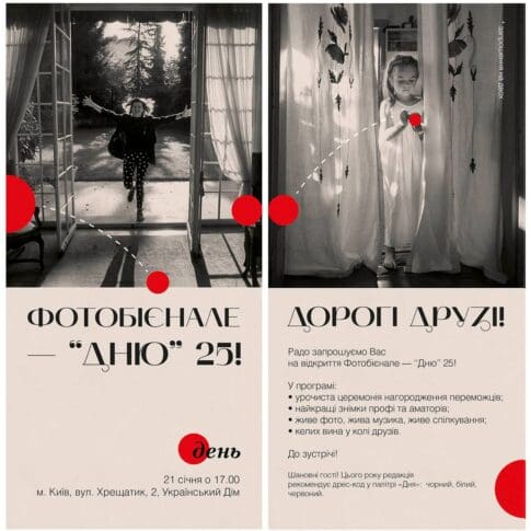 Mi trabajo ha sido seleccionado y forma parte de la bienal fotográfica «День«. Organizada y patrocinada por el diario Day Bild, la exposición puede ser visitada del 22 de enero al 6 de febrero en la Casa de Ucrania de Kiev (calle Khreschatyk, 2).