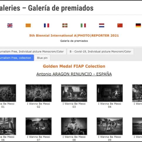 Dos nuevos premios. Mi trabajo ha sido nuevamente galardonado en la prestigiosa 5th Biennial International A|PHOTO|REPORTER 2021 con dos reconocimientos: «Golden Medal FIAP Colection» en la categoría «Photojournalism Free, collection» y «Golden Medal GPU» en la categoría «Photojournalism Free, Individual.