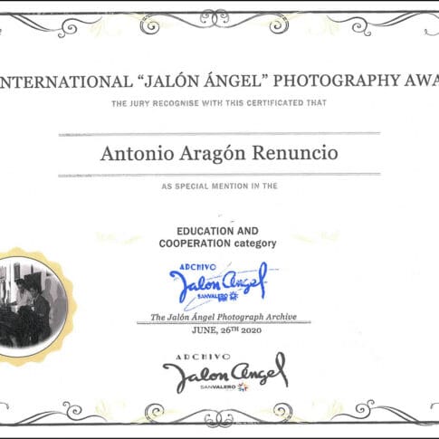 Nuevo reconocimiento. Mi trabajo ha sido galardonado con una «Mención Especial» en el VI Premio Internacional de Fotografía Jalón Ángel, en la categoría Educación y Cooperación con la fotografía «Ansia de Conocimiento».