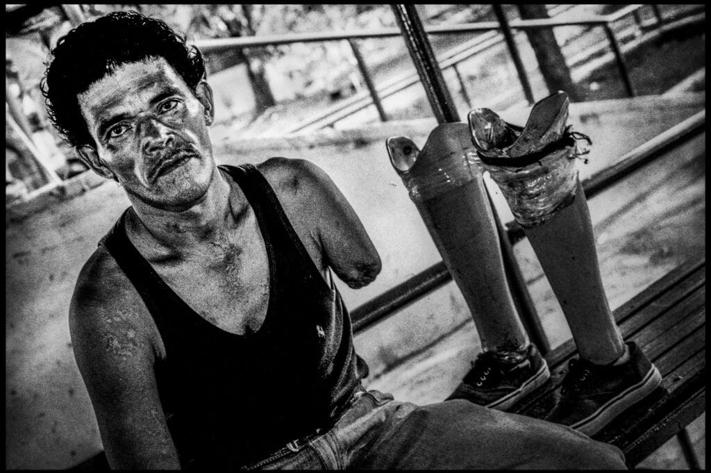 Y sin embargo su vida sigue, aunque con partes de sí mismos dejadas en los húmedos cafetales. Ahora, atados de forma perpetua a esa tosca prótesis de la que con suerte no tendrán que mudar hasta dentro de cuatro años. Los frijoles y el arroz no llegan solos a la mesa diaria. Hay que ir a buscarlos, a lucharlos, arrastrando ese pedazo bastardo de madera por el esquilmado suelo. Una jornada sí y la otra también. Día tras día, sin descanso ni posibilidad de queja. Hay demasiadas, pese a que solo se tenga una pierna y un brazo con los que poder trabajar, bocas- ocho son muchas bocas-, que alimentar.