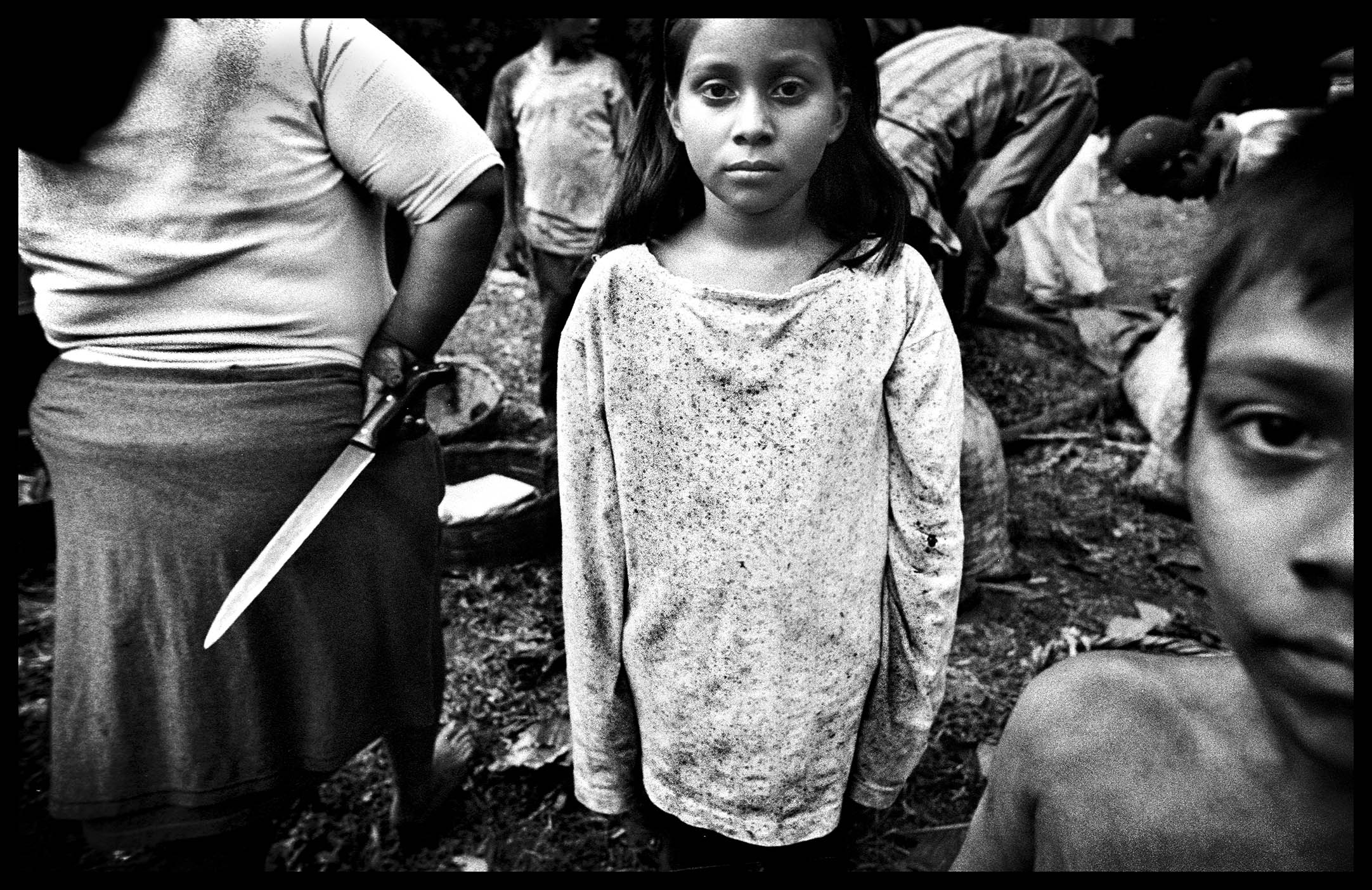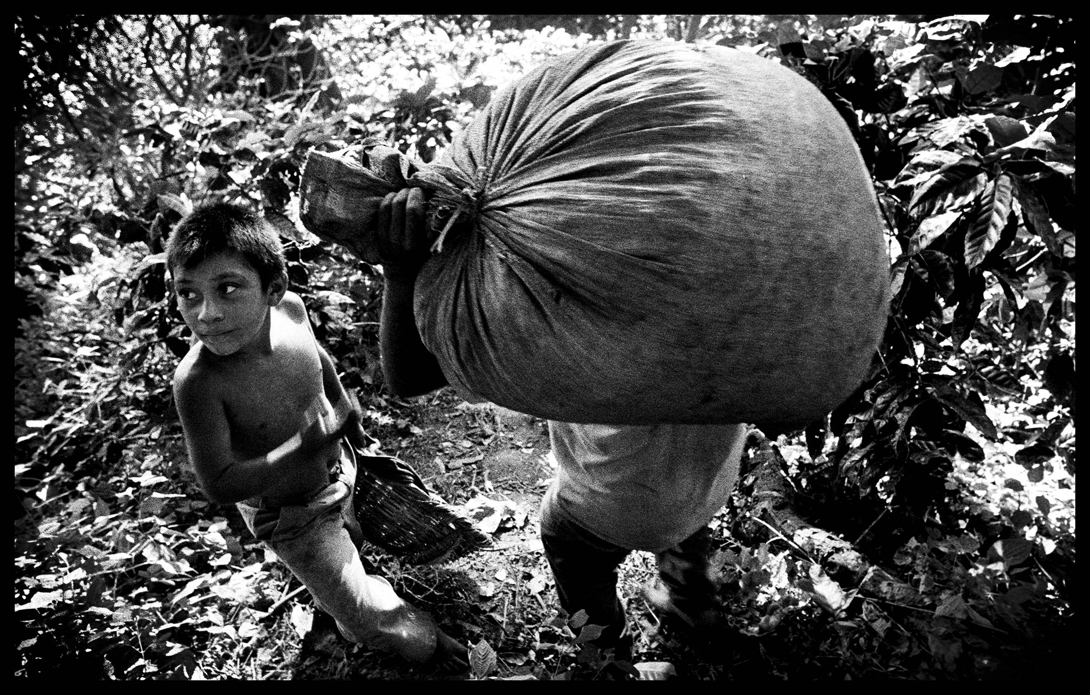 Maria José, 57 años de desgaste en la jungla. Erosión del cafetal. Cuatro de sus muchos hijos le ayudaban en su peregrinaje por la dura jungla, por la escarpada pared de fértil humus y rojizos granos. Manuel, su benjamín de escasos ocho años arrastraba sus descalzos piececitos por la hojarasca y las piedras de la selva. Cristian, el fiel escudero, que a los doce años era ya un experto conocedor de todos los trucos y mañas para sobrevivir en la espesura. Y su mamá lo sabía y agradecía. Manuel lo iba aprendiendo sobre la marcha, de golpe y porrazo. A lo bestia. De ello daban fe sus cicatrices.